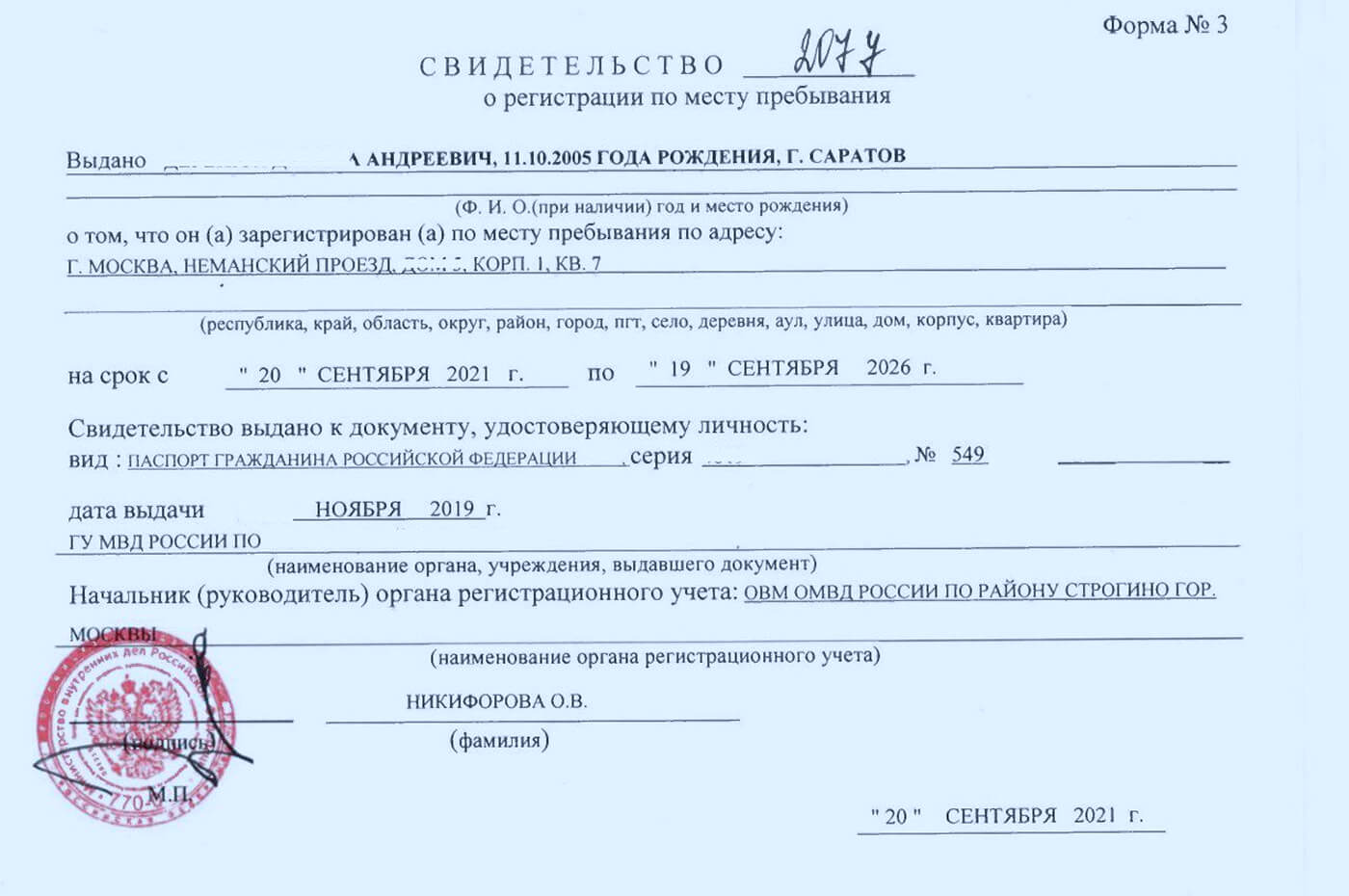 В заявлении указывают адрес, срок пребывания и данные паспорта. Если речь идёт о ребёнке, дополнительно понадобятся документы, подтверждающие личность родителей. В случае, когда ребёнок несовершеннолетний, обязательно присутствие законных представителей. Следует понимать, что госорган вправе запросить дополнительные справки, если возникнут сомнения в подлинности сведений.